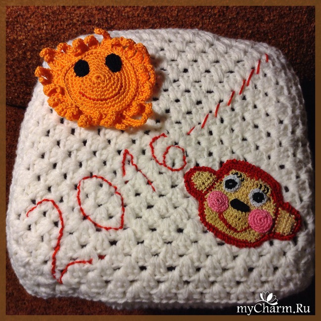 Чтобы удобно сидеть в зимние вечера на любимом деревянном стульчике, связался смешной чехольчик к Новому году Обезьяны. С этим изображением у нас своя история.