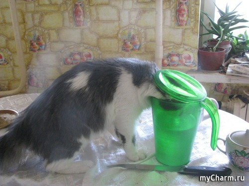 во. в поилке вода есть, но из кувшина вкуснее. и главное, гад, крышку так аккуратненько закрывает за собой... если на месте преступления не попалить, так и не знаешь, что после кота воду пьешь)