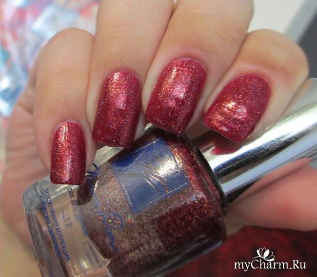 Эксклюзивная коллекция "Сибирского Здоровья" "Нежная Роскошь" оттенок № 37 - малиново-вишнёвое желе, в которое замешаны золотая слюда и немного голографического глиттера. Золотая слюда изнутри подсвечивает лак, вспыхивая искрами, а голография у лака рассеянная, но и без яркого солнца её можно увидеть.