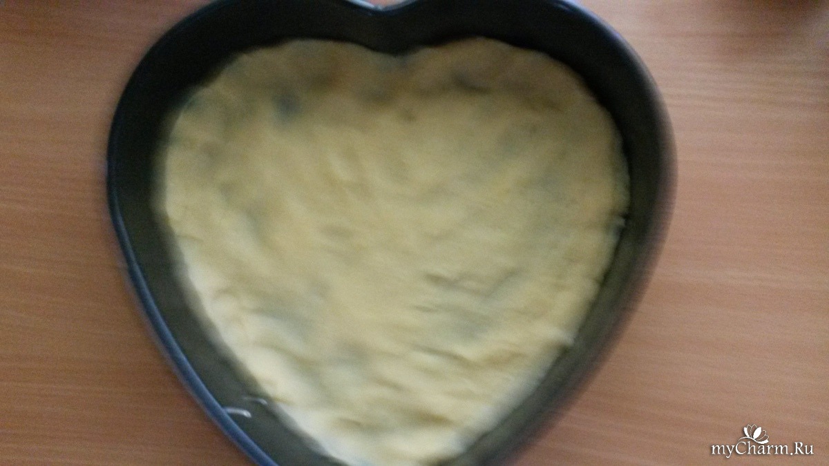 Тесто раскатываете и укладываете в форму, у меня сегодня вот такая сердечком.