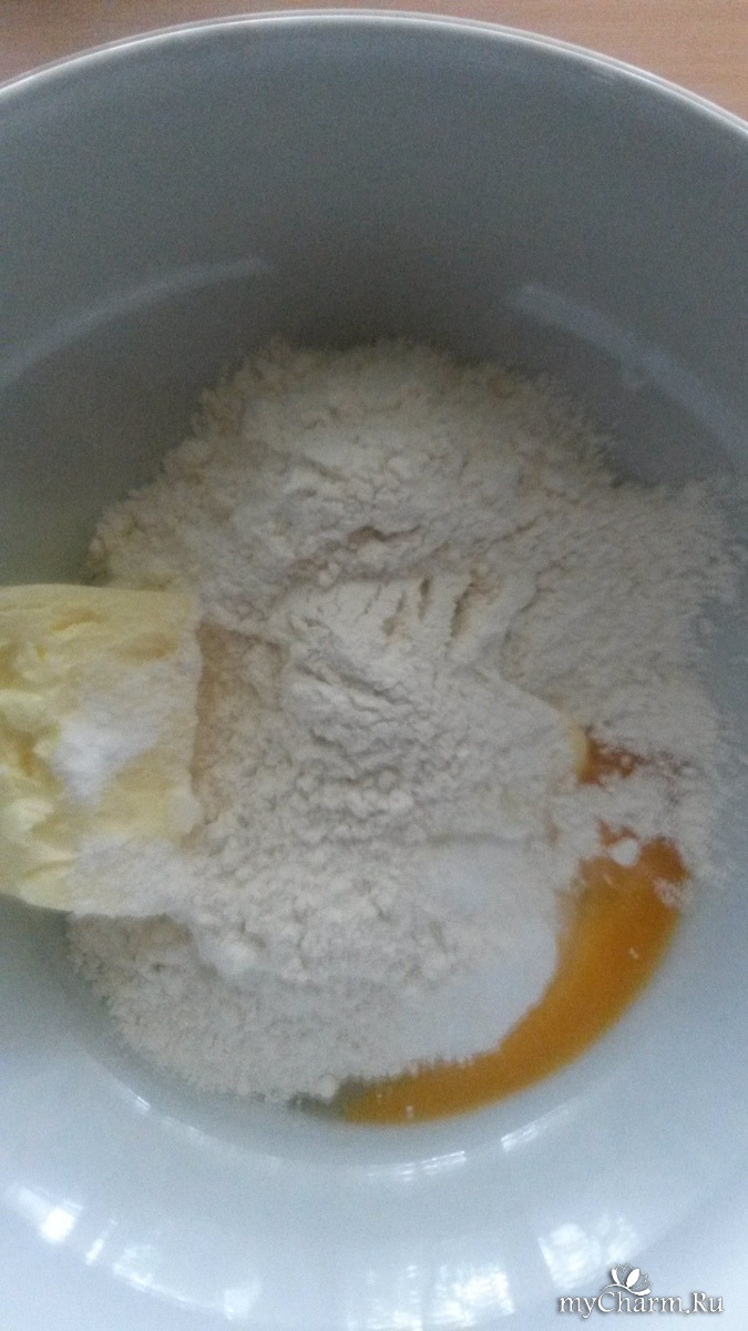 Тесто: 125-150 граммов муки,50 г масла,50 г сахарной пудры,1 желток и 2 столовые ложки холодной воды.