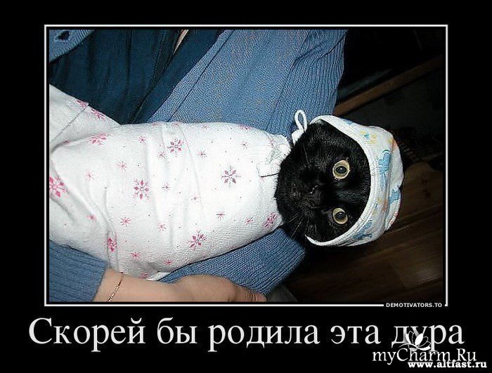 А секунд через тридцать она выходит уже без живота (!), и с новорожденным ребенком в свертке.