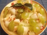 Салат фруктовый и очень хорошо подходит для перекуса и как десерт.