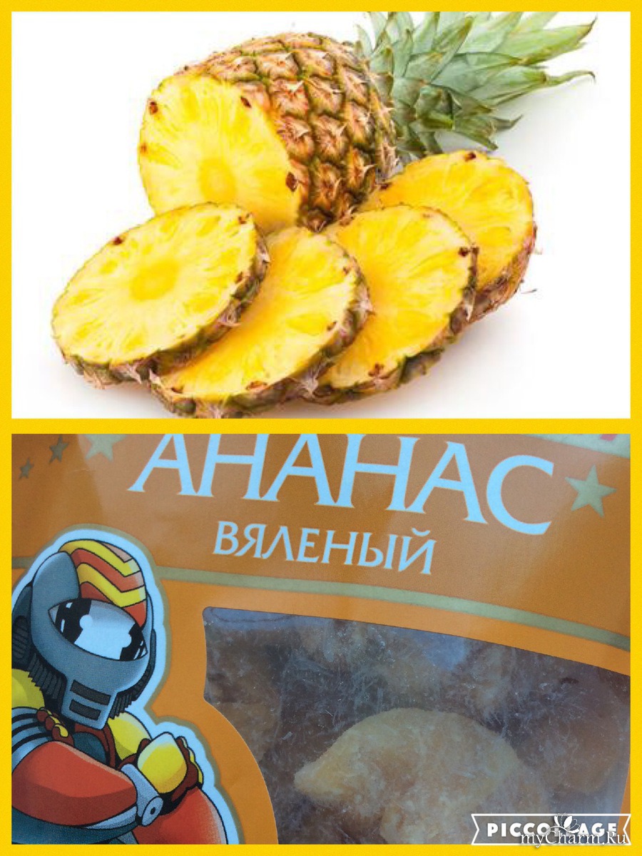 Помимо того, что этот тропический фрукт имеет яркий вкус и неповторимый аромат, он очень богат витаминами и микроэлементами. Это витамины группы В, витамин С, никотиновая кислота (иначе говоря, витамин РР), калий, магний. Употребляя мякоть ананаса, мы помогаем организму противостоять различным вирусам! Вяленый ананас имеет непревзойденный вкус, характерный этому фрукту, он очень сладкий и сытный!