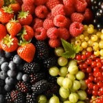 Ягоды и фрукты: цитрусовые, абрикосы, черника, клубника, земляника, клюква, виноград