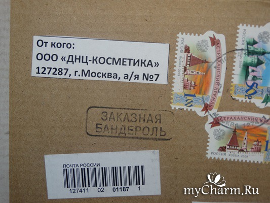 Нашла я, значит, в почтовом ящике своём извещение, побежала на почту, а там мне вручили симпатичную коробочку с надписью "ДНЦ - косметика"!