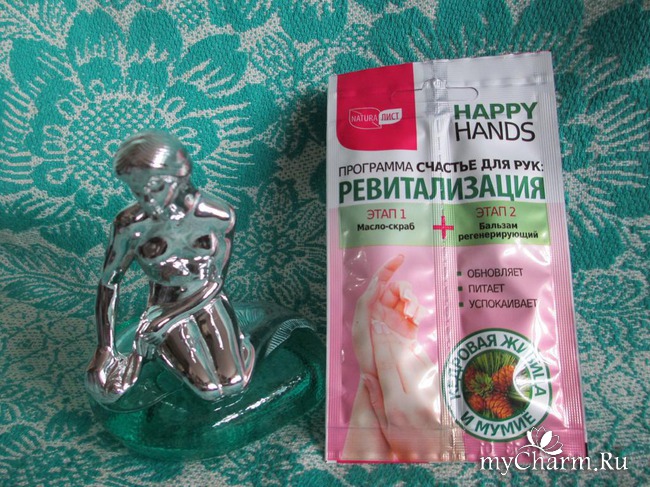 Программы "Счастье для рук" состоят из двух саше по 6 мл. каждый, процедура проходит в два этапа: очищение и питание.