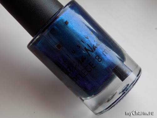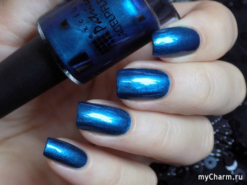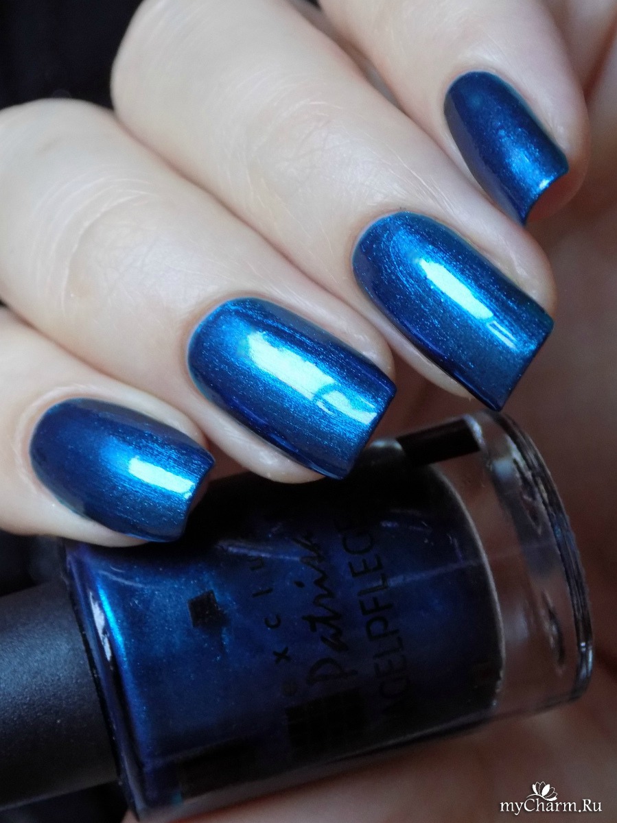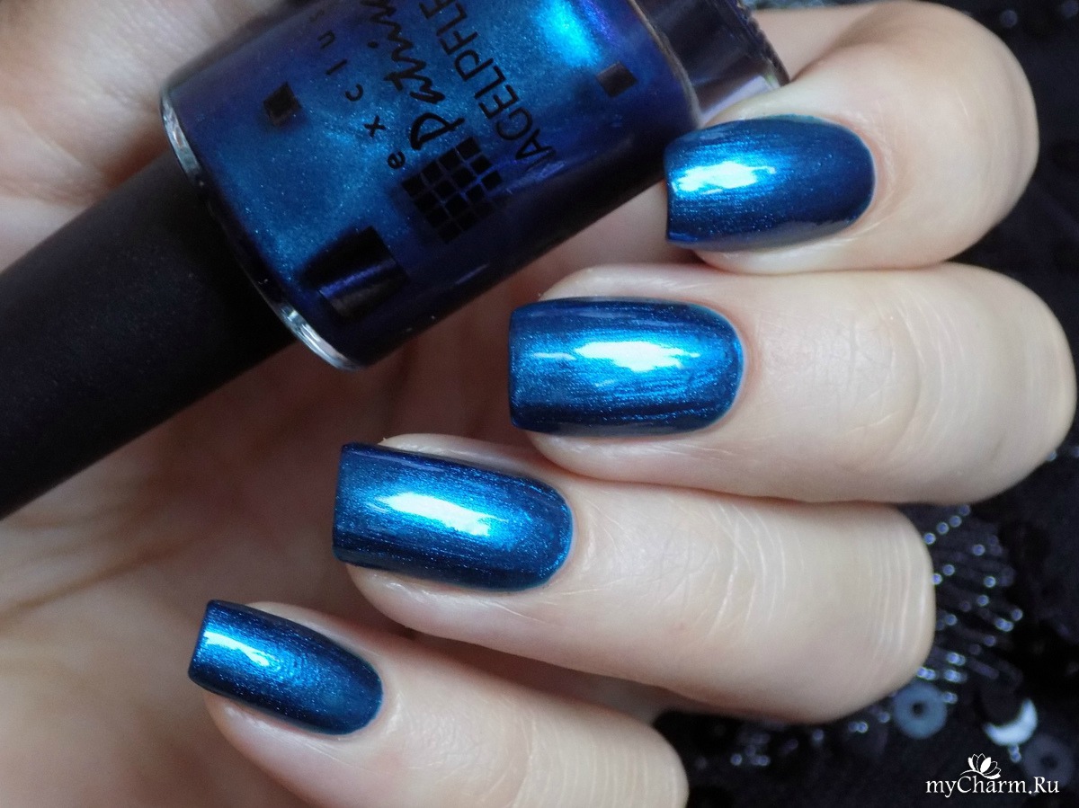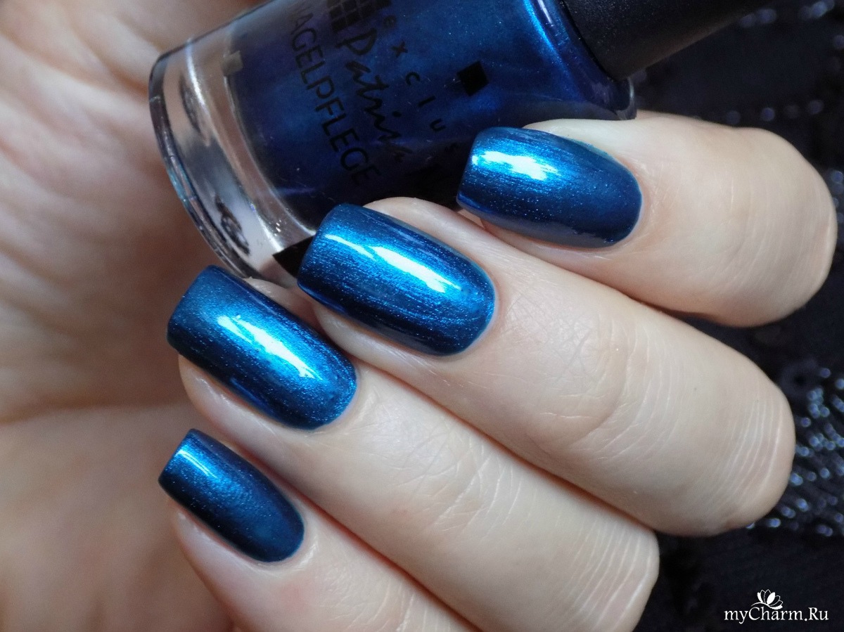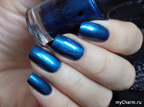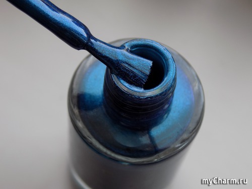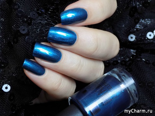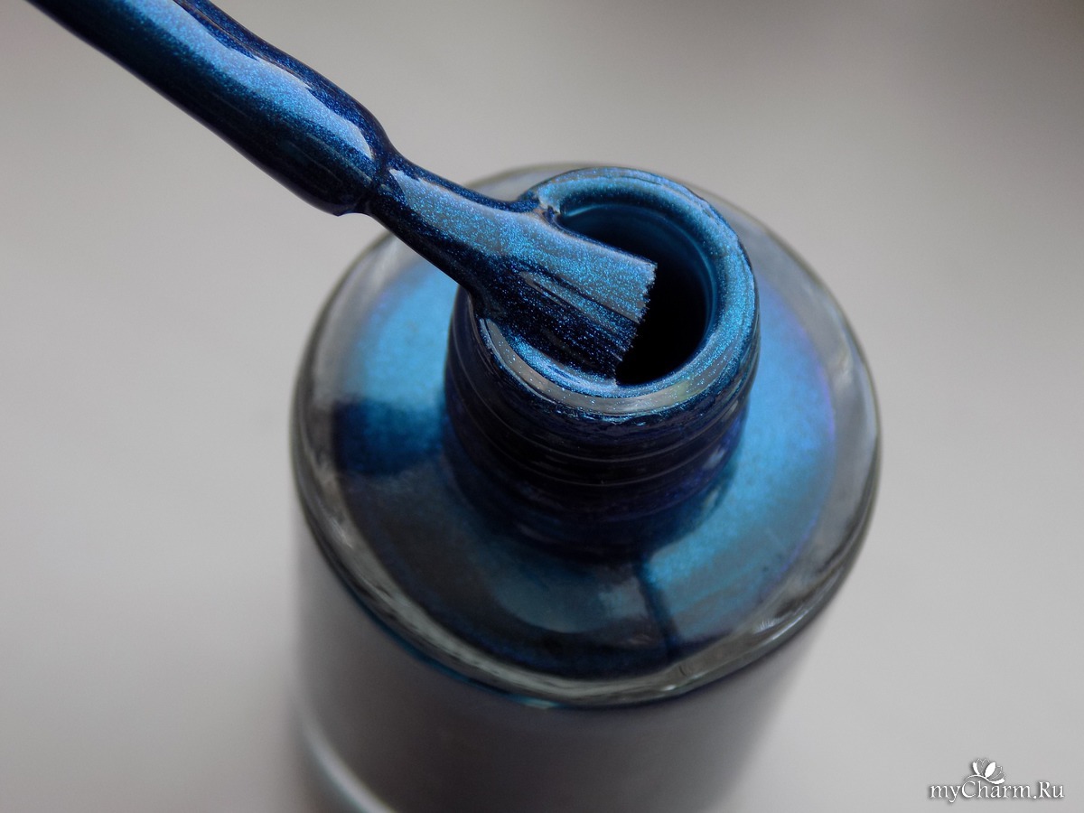 Насыщенный синий металлик с бирюзовым подтоном. Лак настолько глянцевый, что напоминает зеркальное покрытие. Имеет плотное покрытие уже в один слой. Не полосит, как многие металлические лаки. Равномерно покрывает ногтевую пластину и заставляет любоваться собой)))