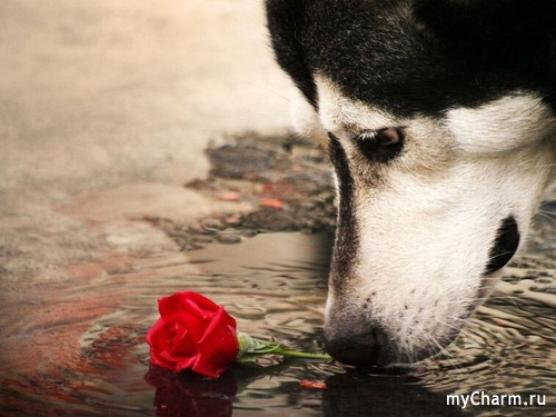 Или собака обронила цветок, когда несла ее кому-то!? Или нашла эту розу?