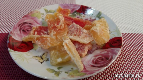 на мой вкус вяленая папайя сладковата, но с чаем или кофе полезную вкусняшку очень приятно кушать.