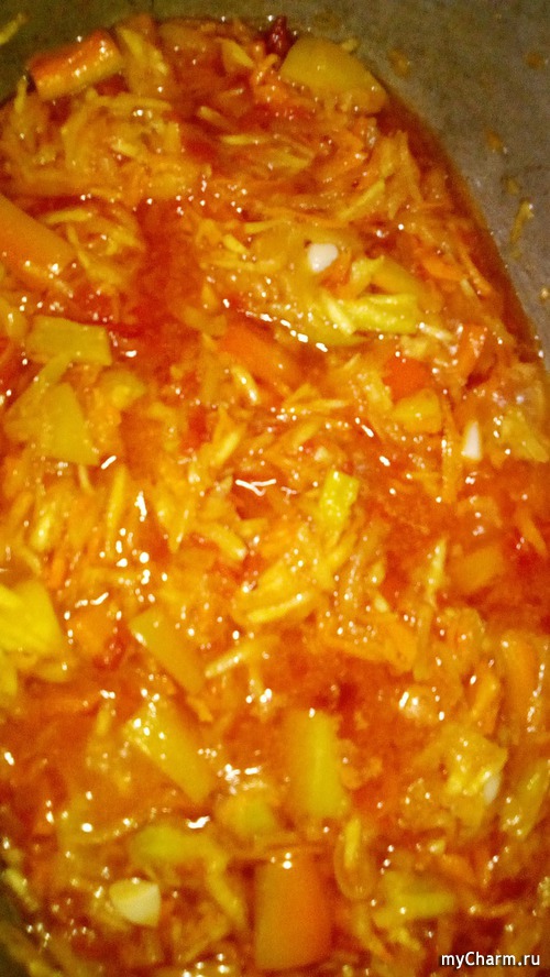 и все овощи сварю в масле,а маринадом в самом конце залью и вместо лука у меня чеснок и чайная ложка чили