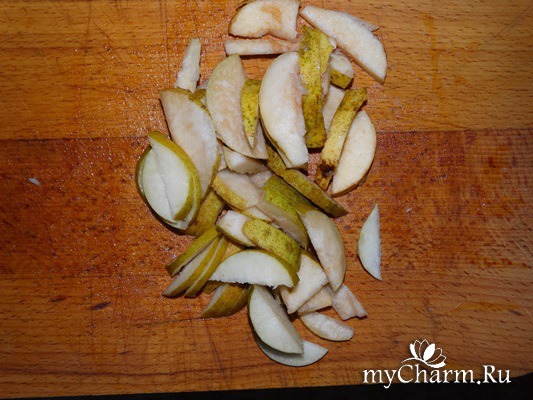 Груши очистить от сердцевины, нарезать тонкими дольками.