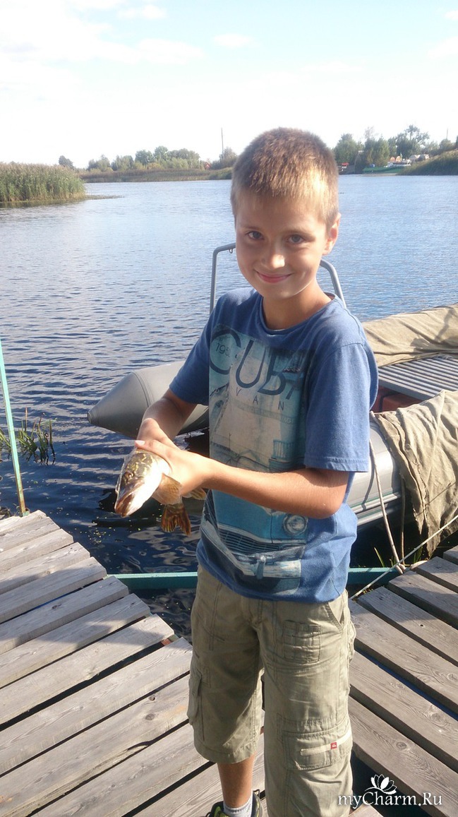 И конечно же моя гордость, сын поймал свою первую щуку!