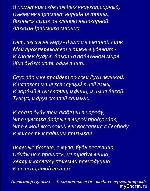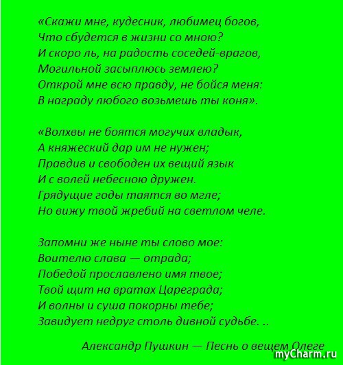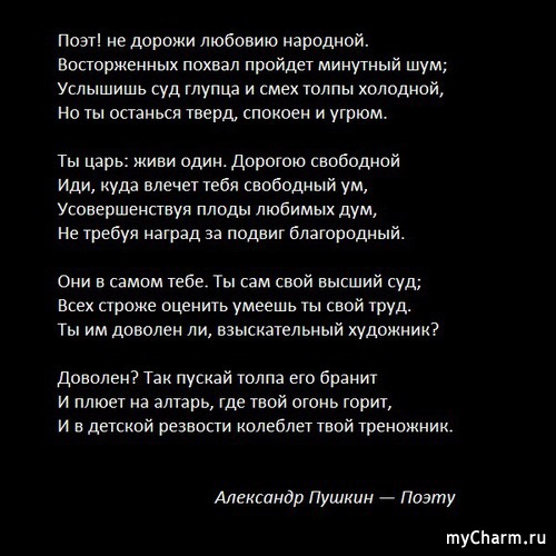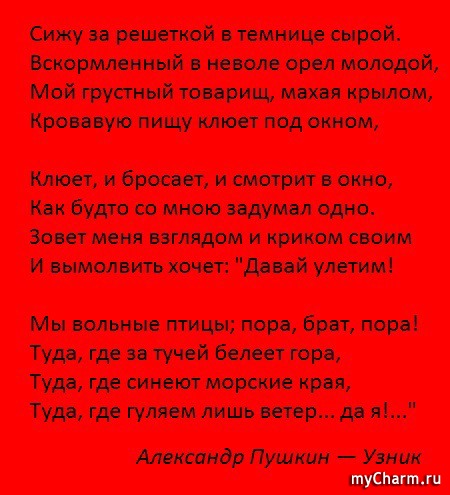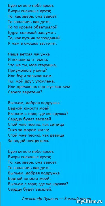 А вот стихи будут совсем из другой оперы. Вам может попасться целое стихотворение или отрывок из известной поэмы.
