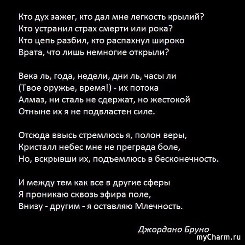 Стих о внутренней свободе, свободе и силе духа. Он словно говорит о том, чтобы возвыситься над материальным (даже жестокой силе алмаза и стали дух не подвластен).
