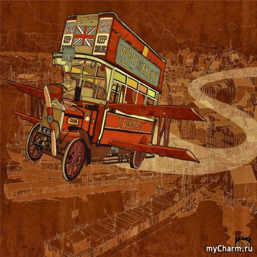 На картине изображен летающий деревянный автобус викторианской эпохи (Англия). Картина абсолютно фантазийная с чувством юмора. И для меня она означает некое витание в облаках, отрыв от реальности, причем нечто из прошлого имеет большое значение.