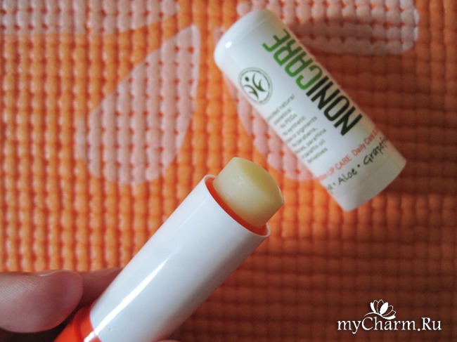 Это мой любимый бальзам. Он стоит всего 195-220 рублей и при этом является средством органического немецкого бренда Nonicare. У него вкус и запах, от которых не оторваться, хорошо смягчает губы, потому что содержит натуральные масла. Натуральные масла и воски создают на поверхности губ защитную пленку, увлажняют, интенсивно питают, защищают от сухости и морщин, солнца и холода, лечат трещины.