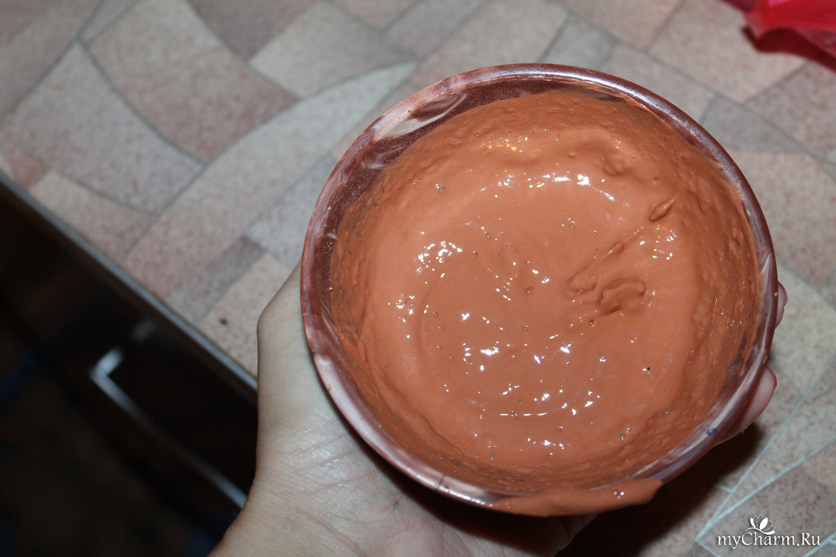 Начала я свой эксперимент с самого простого рецепта - розовая глина, немного теплой воды и бальзам для волос (по совету нашей девочек с сайта). Состав получился как сметана, смывался хорошо. НО, цвет моих осветленных волос стал нежно-розовым, пришлось мыть голову несколько раз.
