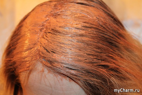 Второй раз, я вместо воды добавила теплого пива для активного роста волос, бальзам. Смесь получилась кирпичного цвета. Нанесла на волосы с помощью кисточки для краски, пакет, погрела немного феном и под полотенце. Цвет по-прежнему стал нежно-розовым, но я уже знала что надо лучше смывать.