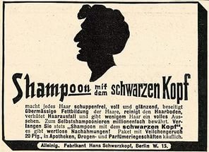 Немецкий химик Ханс Шварцкопф в 1903 году создал первый фиалковый порошковый шампунь. Логотипом этого шампуня стала всем известная черноволосая голова.
