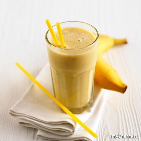 Все ингредиенты взбиваются в блендере. Для украшения можно использовать кусочки банана, дольку лимона и шоколадную крошку.