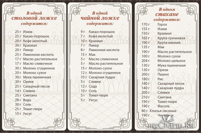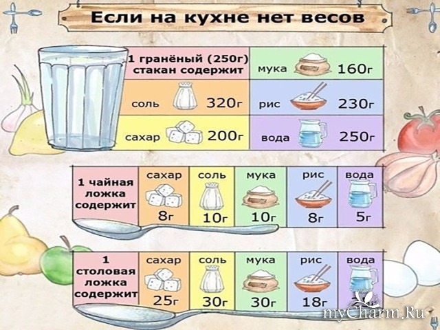 myCharm.Ru → Соотношение массы и объёма продуктов
