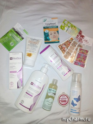 На почте забрала два выигрыша. Один за лучшего пользователя июля-августа - это набор косметических средств от Комплимент