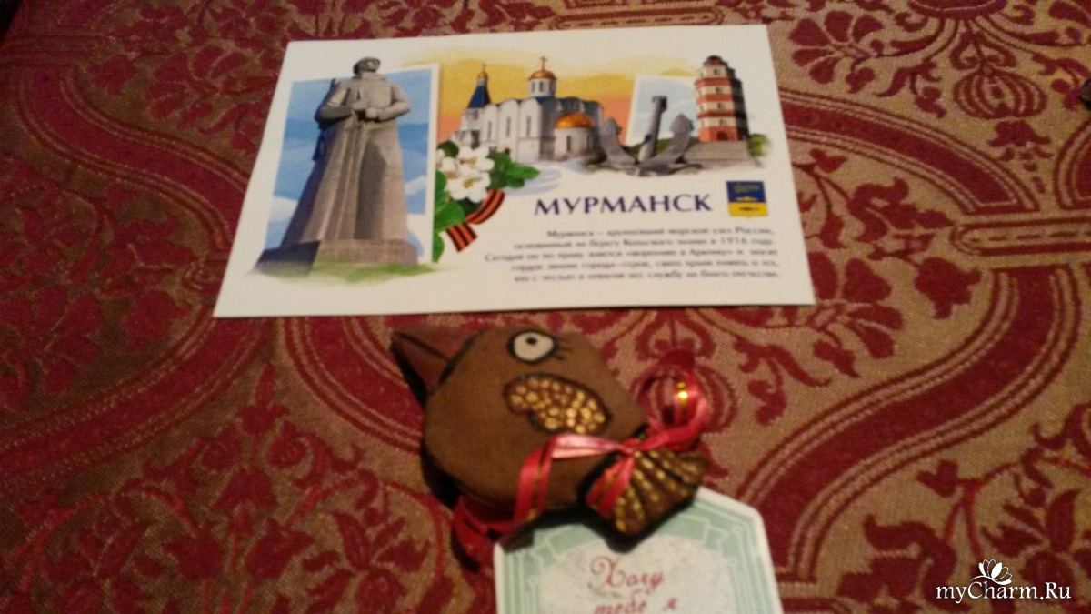 А эти милые шоколадки-деньки! Вот съем и сразу начну богатеть!!! Открытка с достопримечательностями Мурманска! Все никак не складывается у меня поездка в этот великий город! Город, который является воротами в Арктику. Светочка, обещаю, что следующую поездку в Мурманск не пропущу! Теперь в этом городе у меня есть такая замечательная подруга и три, вернее четыре её богатыря!