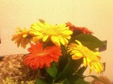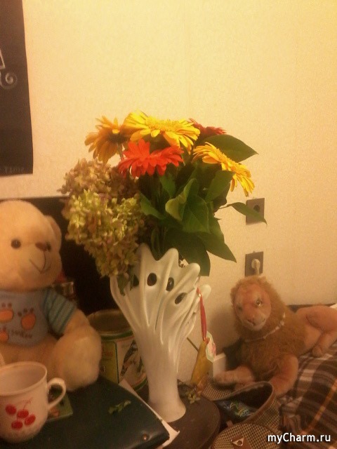 Сегодня мне подарили шоколадку и герберы. Одни их моих любимых цветов. И цвет угадали)))-жёлтые и оранжевые. Я любым была бы рада, но этот цвет такой солнечный, радостный!!!