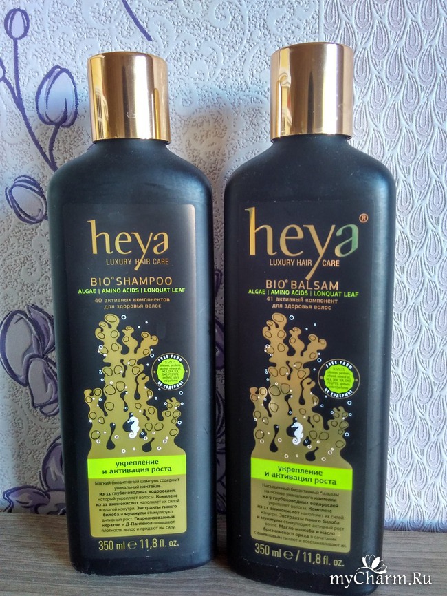 Также хочу познакомить вас с новинкой среди своих уходовых средств (и новинкой в мире косметики в целом). Это био-шампунь и био-бальзам HEYA Luxury «Укрепление и активация роста». Основателем серии косметики для волос HEYA Luxury является всем известный производитель зубных паст Splat. Эти средства содержат более сорока активных компонентов, помогающих делать волосы сильными, красивыми и здоровыми. Среди этих компонентов чего только нет – экстракты глубоководных водорослей, аминокислоты, различные масла… Не состав, а мечта! В то же время среди компонентов вы не обнаружите сульфаты, силиконы, парабены, минеральное масло, синтетических отдушек и красителей, MEA, DEA, TEA, PEG и ГМО: шампунь - на 96%, а бальзам на 97% состоят из натуральных компонентов.Если кто-то из вас пользовался косметикой, в составе которой были водоросли, думаю, вы представляете, каким запахом обладают водоросли. Аромат средств именно водорослевый, иначе не назовешь. Но мне он нравится, у меня уже был опыт использования косметики с водорослями. На волосах аромат становится еще приятнее.