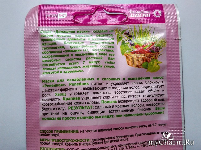 Несомненно, серия «Домашние маски» облегчает жизнь всем тем, кто любит использовать в уходе за волосами все народные средства, но при этом не имеет на это времени. Эти маски содержат «живые» экстракты, сохранившие в себе все полезные свойства использованных растений: крапивы, хвоща, репейника, шалфея, липы, клевера…