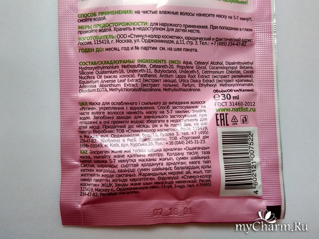 Для всех любопытных, конечно же, прикрепляю и фото состава: