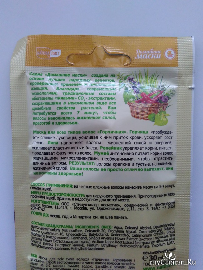 Не подвела и маска «Горчичная» с «живыми» экстрактами липы и репейника, с не менее приятным ароматом и эффективностью. После каждой маски волосы становятся все более приглядными, приятными на ощупь. Они отлично расчесываются, как после использования кондиционера.