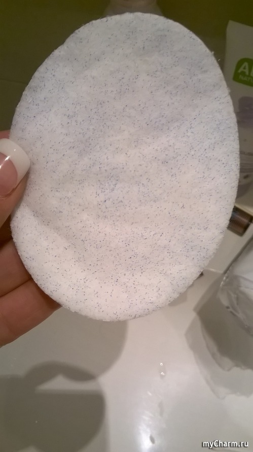 И еще приобрела ватные диски. Вообще то у меня дома их ещё много, покупать не собиралась. А случайно увидела что диски то не простые. А это ватный диск и пилинг в одном.