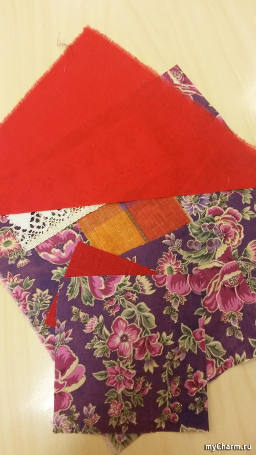 3. Для косынки: Треугольный лоскут яркой однотонной (лучше краснои) ткани