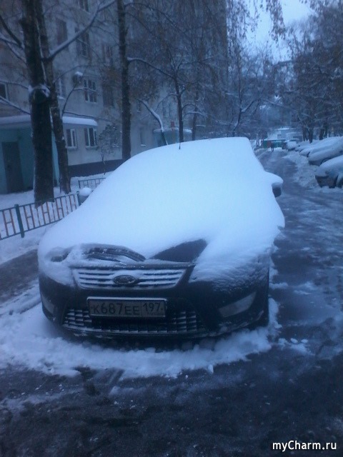Вышла утром, а всё в снегу, ни дорог, ни машин не видно. Но не холодно, под ногами снежок... А вышла из колледжа вечером- снег с дождём!
