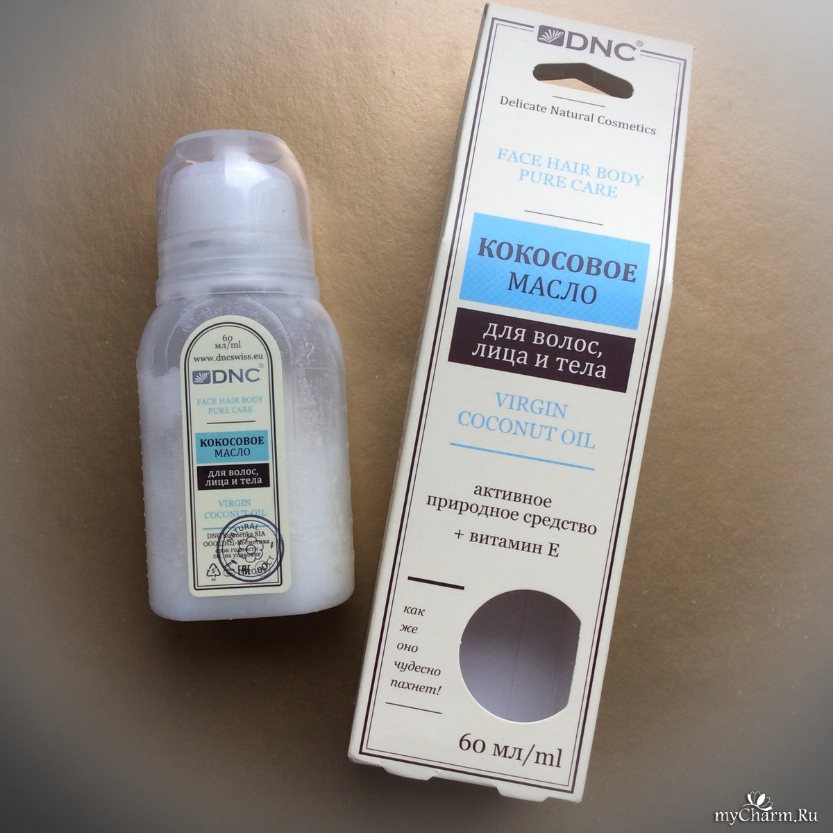 - Кокосовое масло. Использую пару раз в неделю для легкого и приятного увлажнения и питания кожи. Это средство настолько универсально, что подходит для ухода за любой частью тела! И, да, масло тоже от DNC