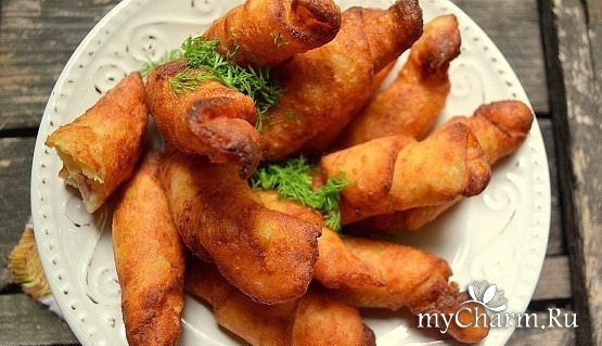 Обжариваем рогалики во фритюре до золотистого цвета.