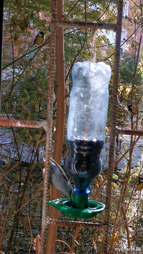 У меня за окном кормушка, стая синичек, воробьи там постоянно кормятся.