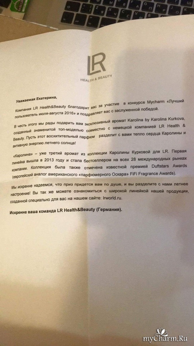 С радостью отчитываюсь, что парфюм, который я выиграла в конкурсе за лучшего пользователя июль-август все таки получен моими детьми в Москве!