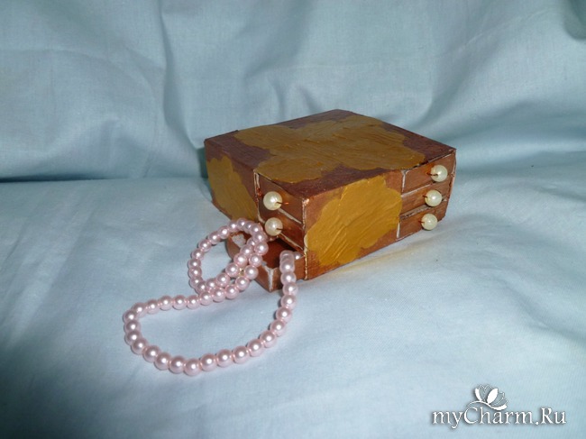 4. Шкатулка из спичечных коробков. Тут я своё детство решила вспомнить, как мы подобные вещицы делали и дочке показать. Несколько коробков склеили между собой, каким образом понятно на фото. Затем оклеили бумагой, покрасили акриловым металликом, ещё небольшую аппликацию сверху и по бокам. На ящичках закрепили проволокой ручки-бусинки. Пользуемся до сих пор, храним бусинки и пуговички.