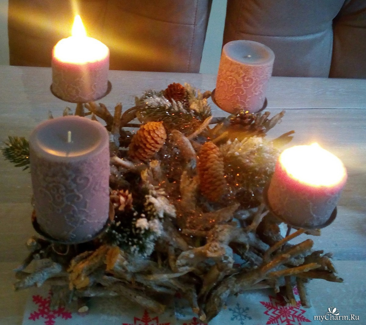 Обычно он делается из хвойных ветвей и украшается лентами, сосновыми шишками, шариками и четырьмя свечами – по одной на каждую неделю Адвента. Их зажигают по очереди каждое воскресенье праздника. В первое воскресенье зажигается первая свеча - Свеча Пророчества. В следующее воскресенье уже будут гореть две свечи, затем - три (третья свеча носит название Возрадуйтесь!), и, наконец, четыре.