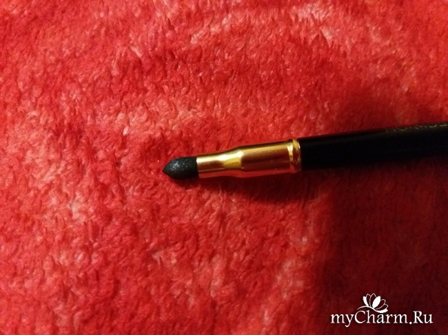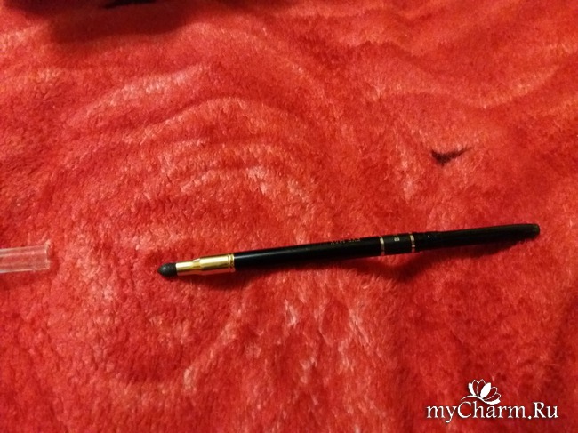 Начинается такой вид макияжа с того что черным карандашом зарисовывают полностью все подвижное веко, а на неподвижное растягивают остатки карандаша чтобы создать эффект тени или размазаности. Для этого у меня есть специальный карандашик со спонжиком, но можно это делать кисточкой для теней. Старайтесь растушевывать интенсивно, не оставаляя линий, штрихов, чтобы окончательный эффект был как нанесенные тени. Нанесенный карандаш как база, делает макияж стойким, не будет течь и размазываться.