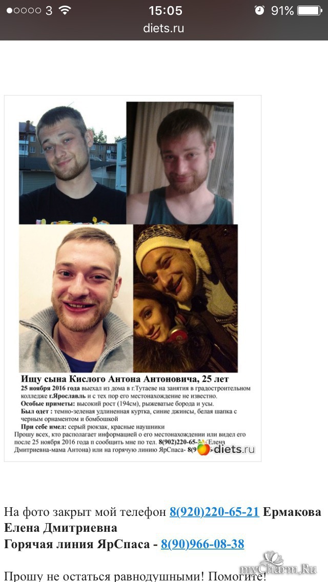 myCharm.Ru → Девочки, пропал молодой человек! Это репост, не могла остаться равнодушной!!