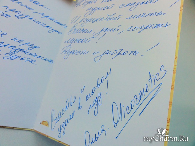 Я получила открыточку с поздравлениями и пожеланиями, написанную от руки самой Ольгой