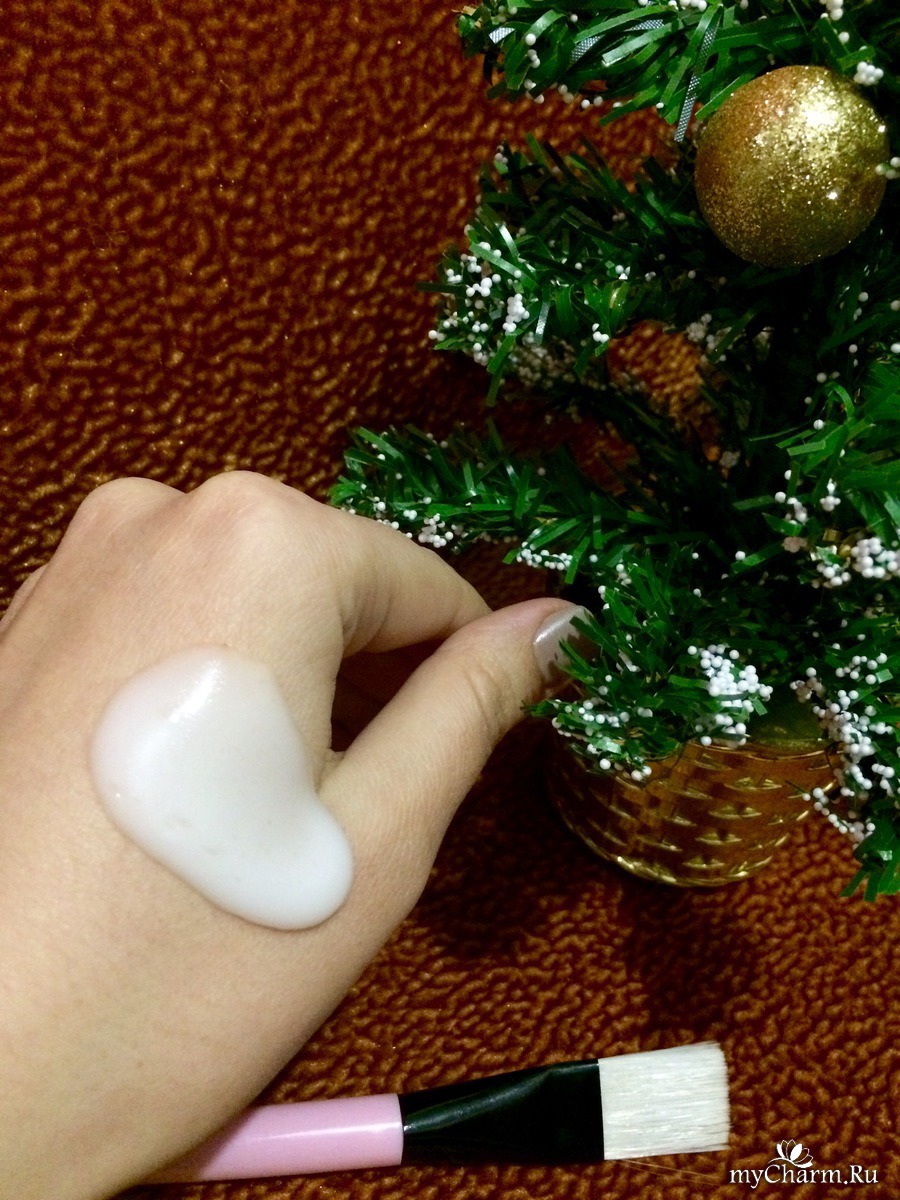 Маску я наносила, как выше написано на очищенную кожу, у меня это пенка для лица. Наносила с помощью кисточки, пальцами не удобно она жидковата.