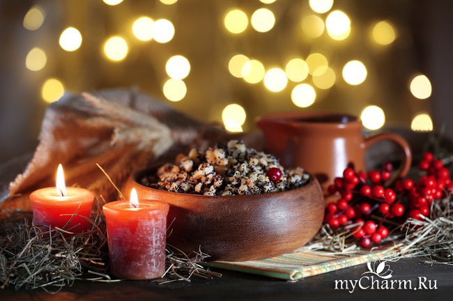 Сочельник получил свое название от слова «сочиво» - это сваренные на меду зерна пшеницы и других злаков. Дело в том, что в Сочельник - последний день Рождественского поста - до появления на небе первой звезды старались вообще ничего не есть. А вот когда на небе зажигалась первая вечерняя звезда (за нее традиционно принимали планету Венеру) можно было отведать сочиво, а потом, после всенощной и окончания поста уже как следует разговеться, в том числе мясными блюдами.Сочиво начинали вкушать после исполнения рождественского песнопения «Волхвы со звездою путешествуют». Рождественский ужин проходил всегда очень торжественно, на стол традиционно ставили двенадцать блюд - по числу апостолов - учеников Христа, а в честь яслей, в которых по преданию родился Спаситель, было принято класть пучок сена.