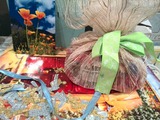 Когда материал был снят и завеса тайны приоткрыта. О боже, что я увидела, еще большую красоту в оформление подарка. Снова материал, еще прекраснее, чем предыдущий. Ленточка радостного цвета с замечательным рисунком. И все это божество украшали мелкие глиттерные конфетти. Моему счастью не было предела, даже не заглядывая внутрь посылки, я радовалась подарку, как ребенок, нашедший Новогодний сюрприз от дедушки мороза под елкой. В принципе так и было на самом деле, только это была снегурочка.