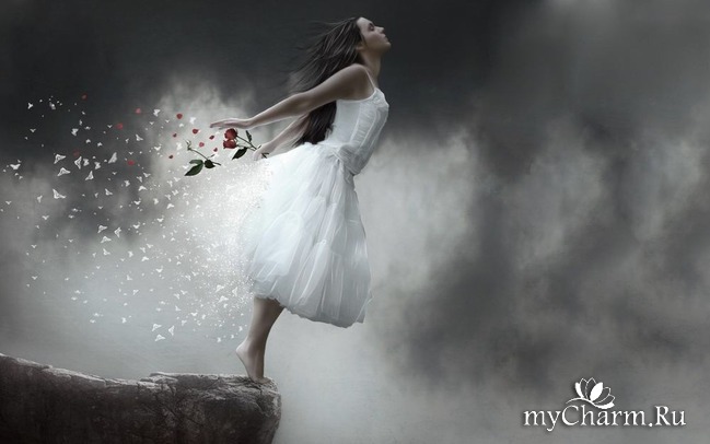 Ты сидишь долго, пытаясь осознать, что же с тобой произошло. Но ответа нет. Ты осторожно смотришь вниз с этой высоченной скалы. И что ты видишь сквозь туман. Силуэт твоего любимого, который удаляется от скалы. А лестница изломана на дрова и горит в костре.