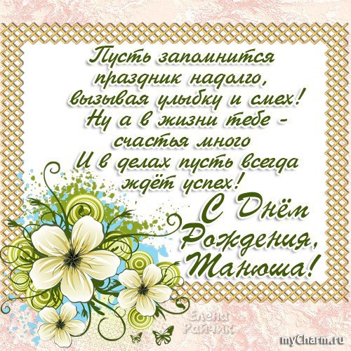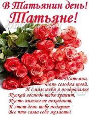 Сегодня 25 января День Рождения у нашей подружки Танечки ( Счастлива дома ) Прими слова мои простые: Желаю горы золотые, Здоровья — воз, любви — торнадо, В делах, на личном — всё, как надо. В друзьях — почет, в семье — заботу, И в удовольствие — работу. Удачу — в добрые подруги, Повеселиться на досуге. Приятных слов и комплиментов, Побед и радостных моментов... Читать полностью |